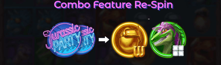 Când doar două simboluri Scatter cad pe rolele slotului Jurassic Party, funcția repetare a rotirii este declanșată.